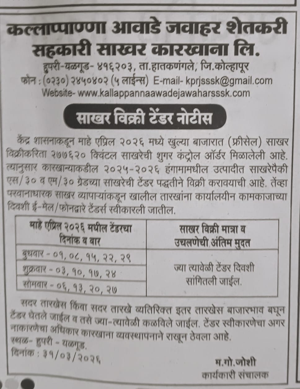KALLAPPANNA AWADE JAWAHAR SHETKARI SAHAKARI SAKHAR KARKHANA LTD., HUPARI: